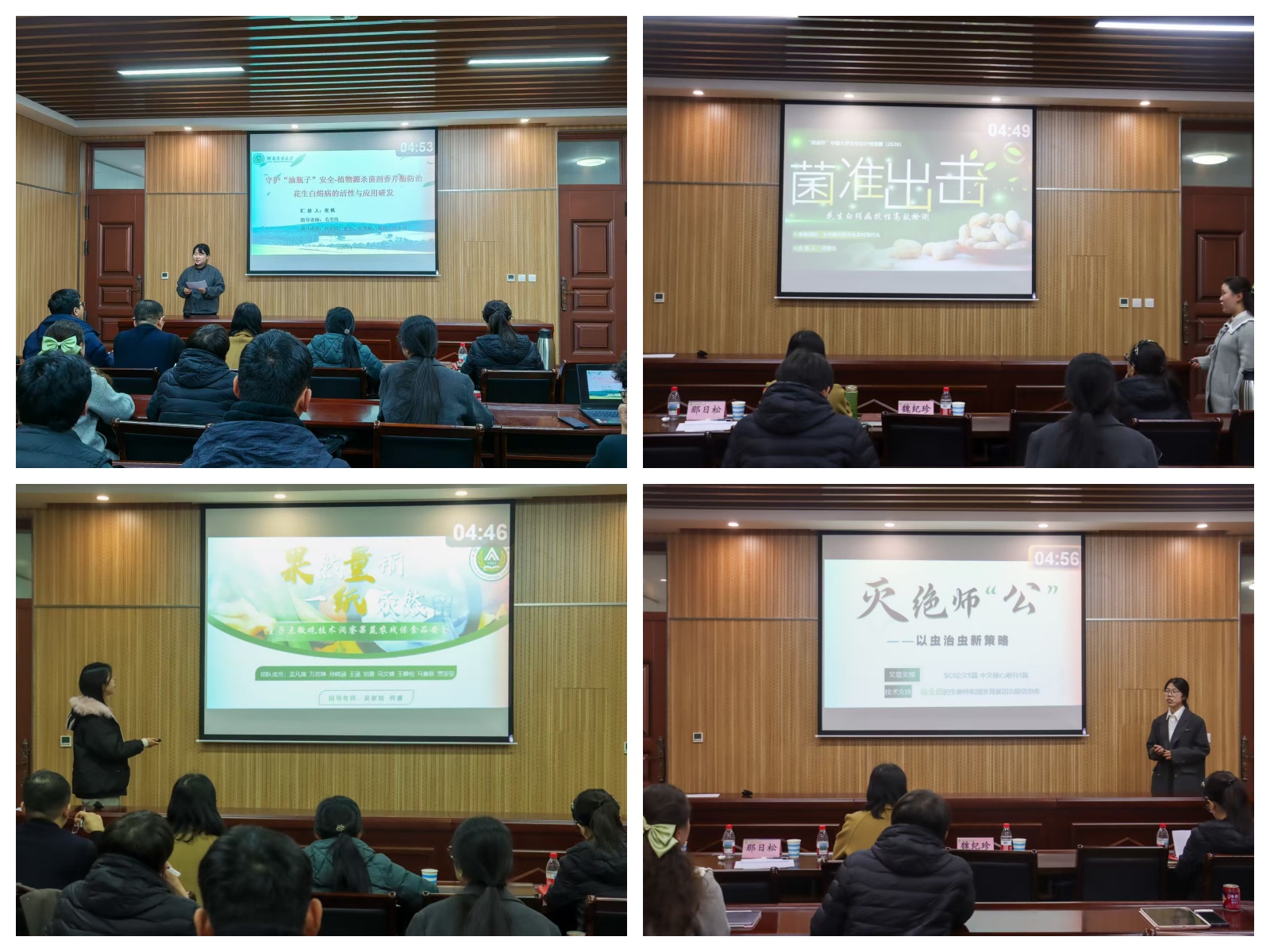比赛现场,各参赛团队依次登台,围绕项目核心创新点、实践过程与社会价值展开汇报。评委老师们结合植保学科特色与国家粮食安全需求,从项目科学性、落地可行性及推广价值等维度逐一提问,既精准指出优化方向,也为团队后续打磨作品提供了专业指导,充分展现了银河娱乐场