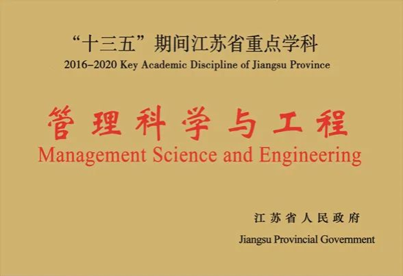 "Management Science and Engineering" was rated key discipline of Jiangsu province. "Business Administration" and "Public Administration (Medical Insurance)" were respectively elected as brand and characteristic specialty program construction center of Jiangsu province.