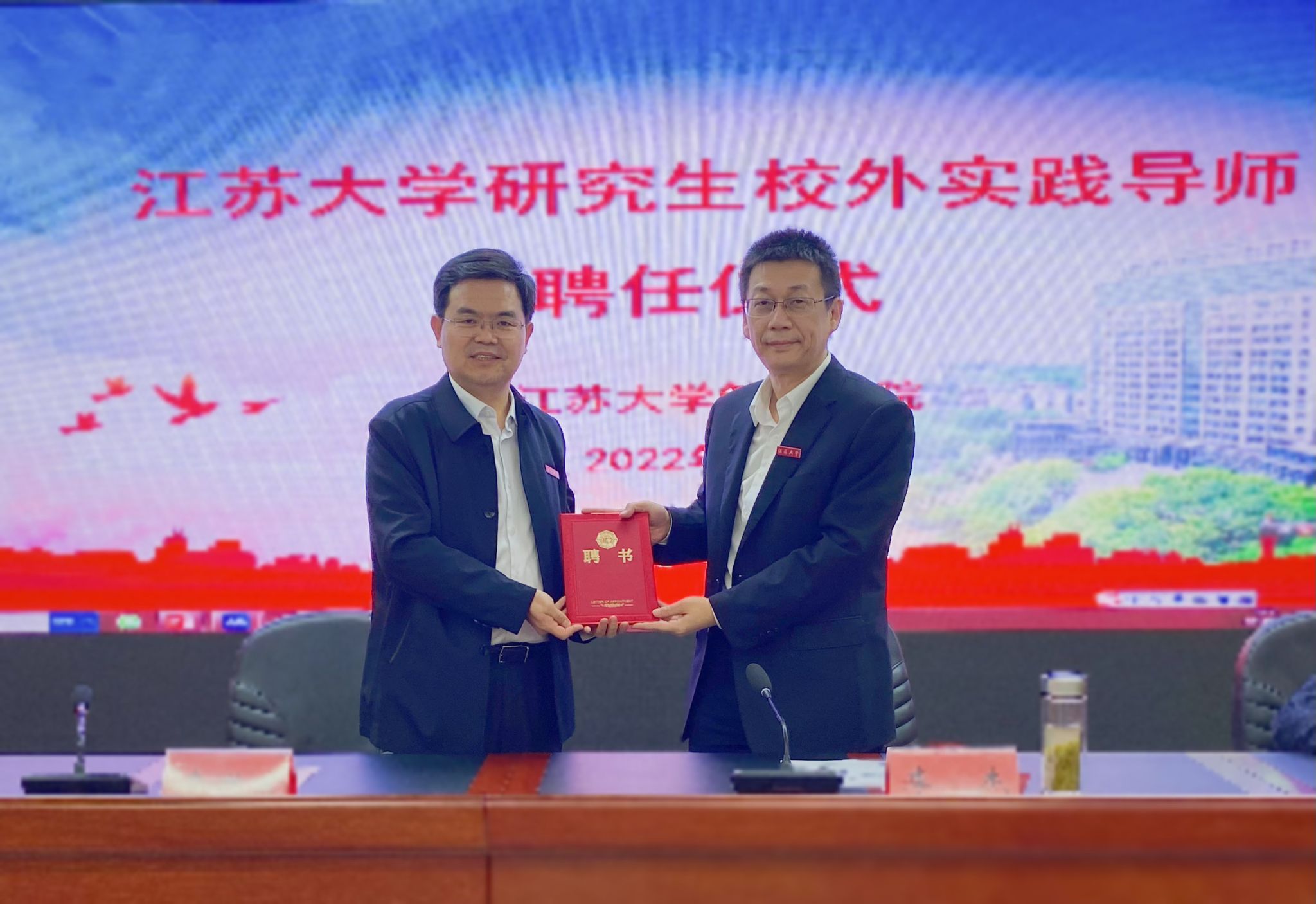 校外研究生实践导师聘任仪式在三江楼1501报告厅举行。校党委副书记、博士生导师李洪波教授,工业管理工程87级校友、中国工商银行镇江分行党委书记、行长李杰先生,校党委常委、宣传部部长杨道建教授,以及部分银河娱乐场
