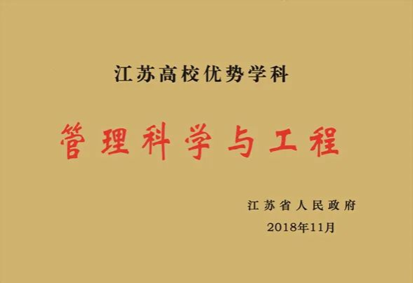 "Management Science and Engineering" was rated key discipline of Jiangsu province. "Business Administration" and "Public Administration (Medical Insurance)" were respectively elected as brand and characteristic specialty program construction center of Jiangsu province.